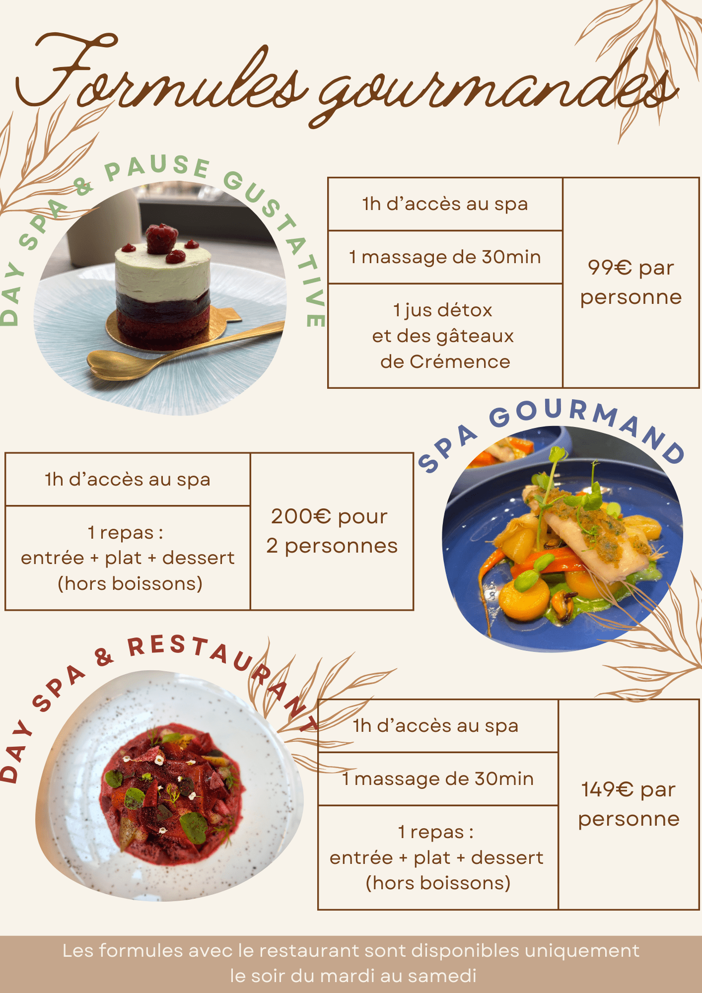 Les clients de l’hôtel bénéficient d’un tarif préférentiel de 30€ par jour et par personne pour la durée maximale d’1 heure 30. Accès au spa durant les horaires d’ouverture. Les enfants ne sont pas admis au spa sauf en soin.